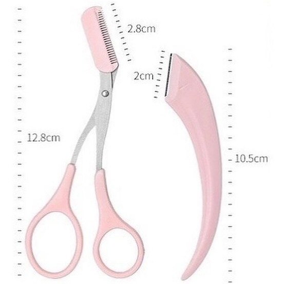 پک شامل یک قیچی و یداری قيچى ابروى شانه دار و تيغ مخصوص تميز كردن ابرو فوق العاده باكيفيت و كاربردى جنس مرغوب و بادوام مناسب اصلاح صورت و ابروهاک تیغ حالت انحنای تیغ برای راحت نگه داشتن