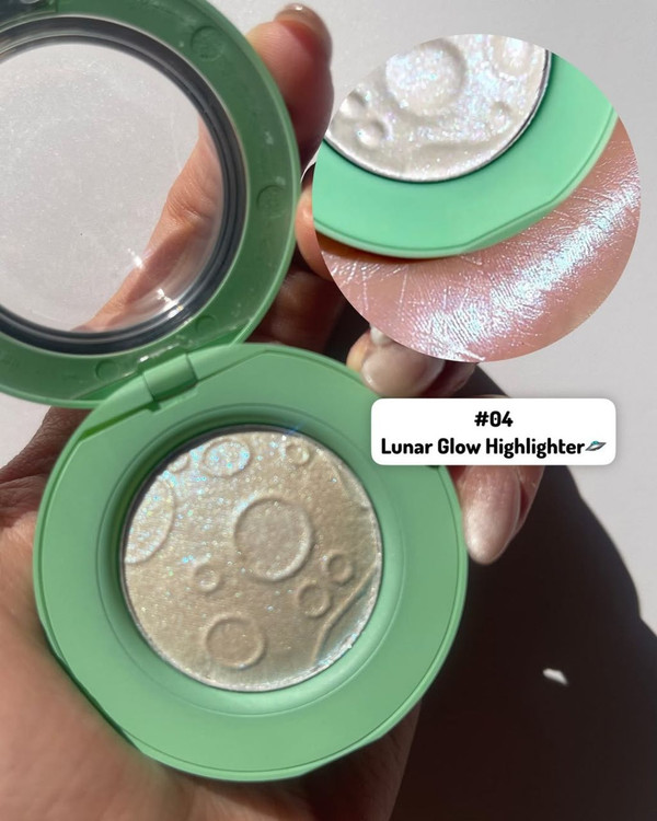 این هایلایتر شیگلم همانند یک بشقاب پرنده فوق العاده زیبا است که درخشش کهکشانی به میکاپ میدهد این درخشش منحصر به فرد بازتابنده رنگ آبی سبز می باشد و احساس سفر در کهکشان ها را به شما می بخشد.