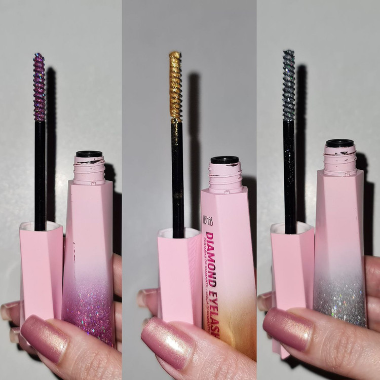 این ریمل ها حسابی ترند شدن و روی مژه ها واقعا قشنگه کیفیتش به شدت عالیه و پیگمنت زیادی داره به محض زدن روی مژه خشک میشه و اکلیل هاش ریزش نداره توی رنگ خیلی جذاب موجوده: صورتی طلایی نقره ای وقتی میزنید انگار دونه های برف روی مژه هاتون نشسته